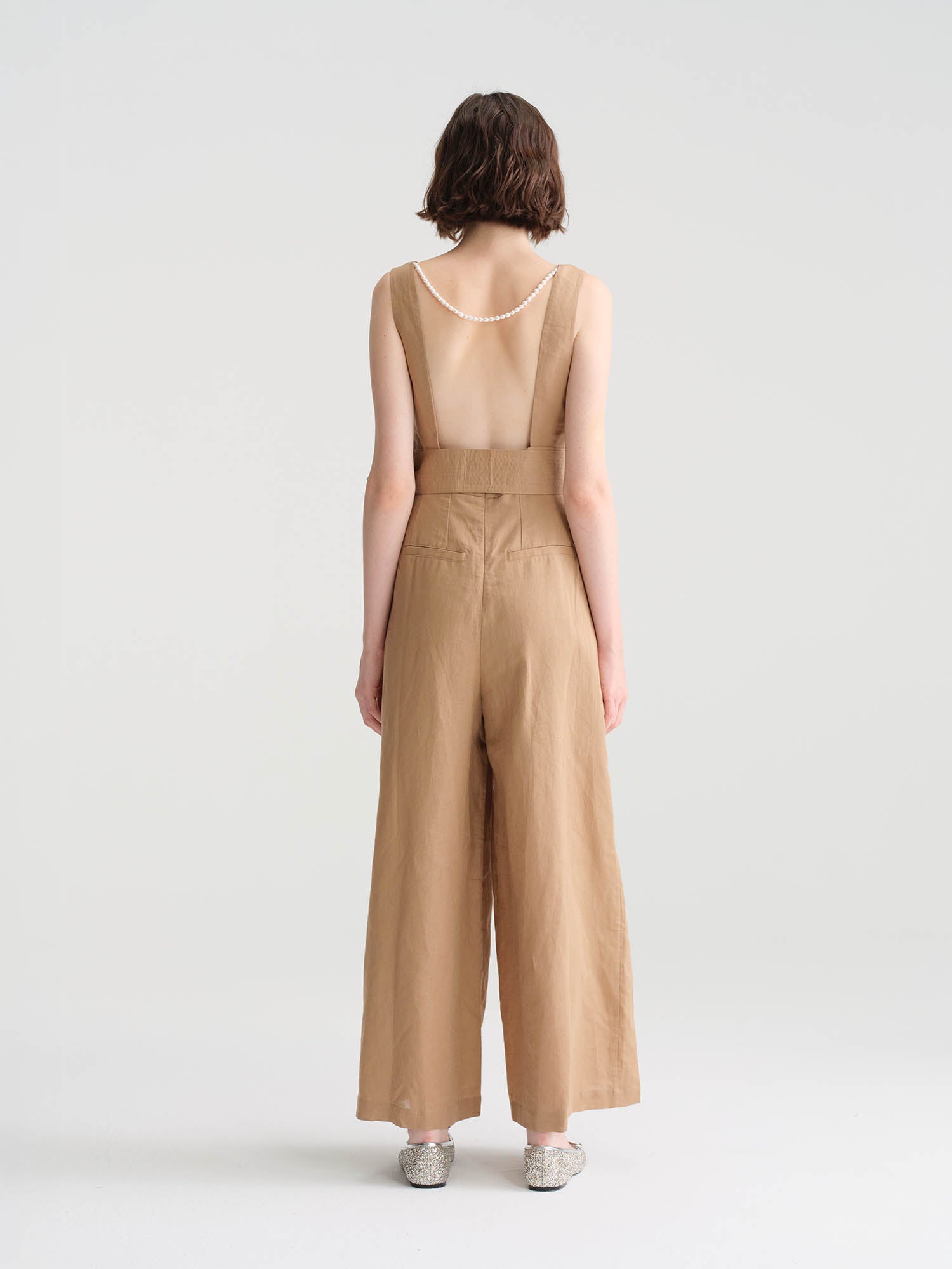 - sleeveless, wide-leg pants with a belted waist